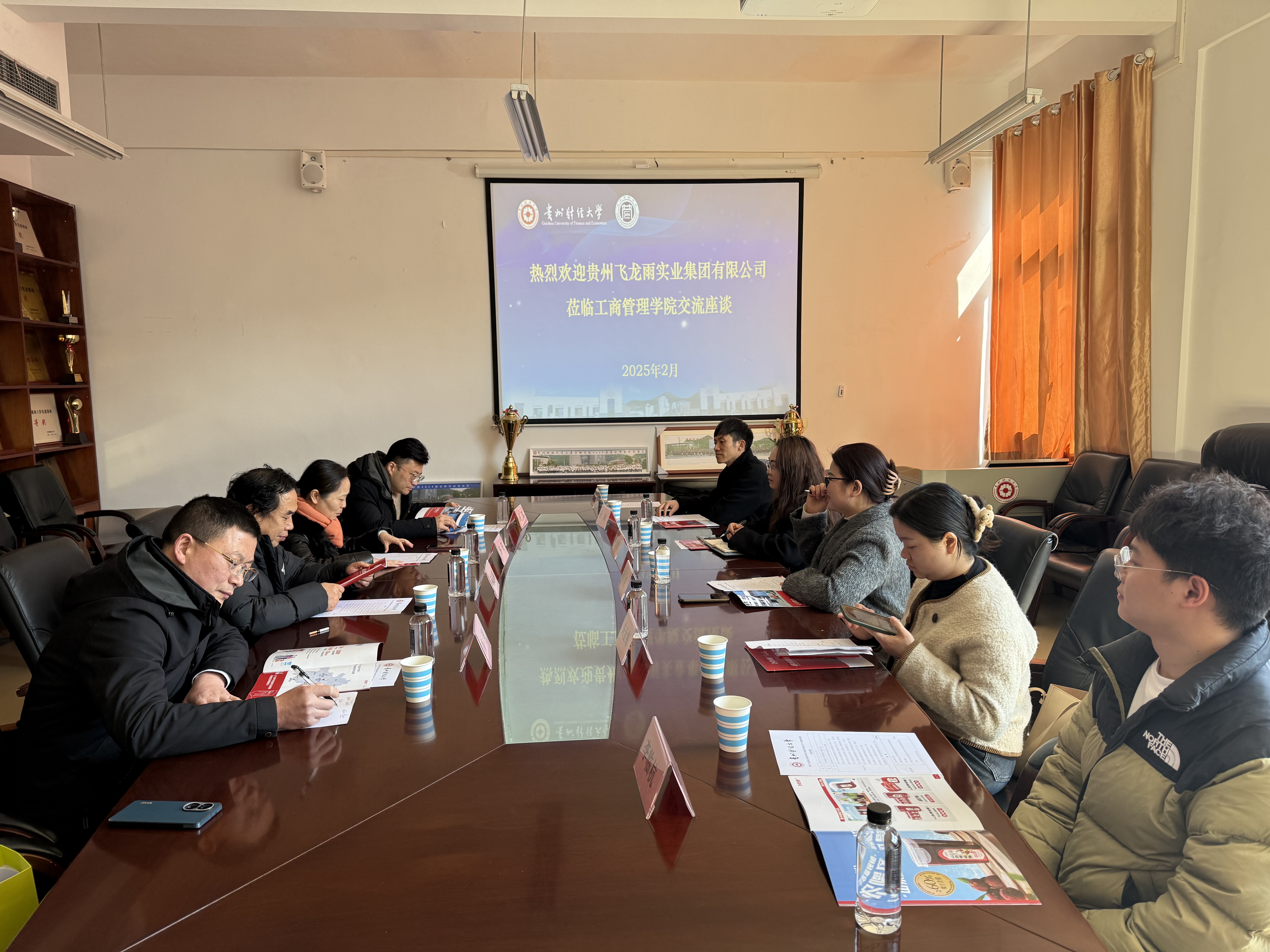 2025年2月27日,贵州飞龙雨实业集团有限公司一行到2026年国际足联世界杯交流座谈。此次交流座谈的参加人员有贵州飞龙雨实业集团有限公司集团行政中心负责人周代妮、集团人力资源部经理罗贤艳、集团招聘负责人朱金梅、集团销售部区域经理杨海、实习生代表李临杭、公司党委书记杨阳、党委副书记何瑞、副经理胡北明、物流管理系副主任肖强。会议由杨阳主持。