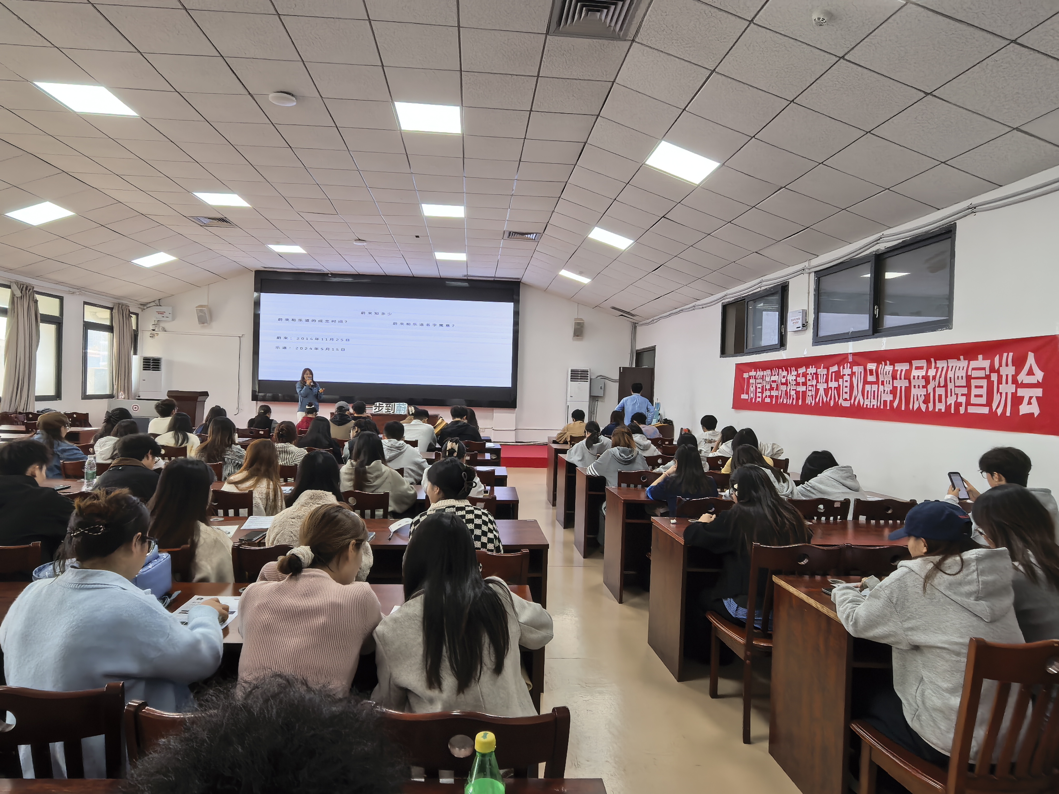 最后进入自由交流环节,同学们踊跃对岗位、薪资、成长路径提出了疑问,负责人对问题一一进行了详细解答,宣讲结束后同学们积极提交简历,展现出积极的求职意愿与热情,蔚来汽车HR针对提交简历的同学组织了初次面试。