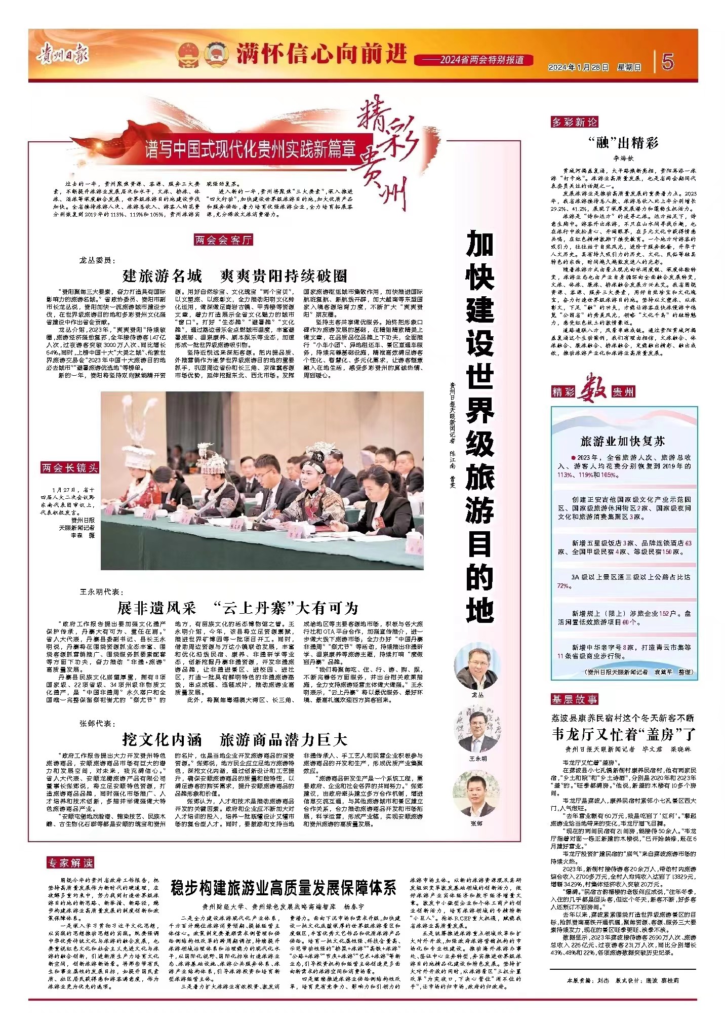 贵州日报两次邀请杨春宇教授针对我省两会关于“打造世界级旅游目的地”,就政府工作报告中提出的我省如何打造世界级旅游目的地的新要求、新观点、新举措,解读如何打造世界级旅游目的地理论文章。