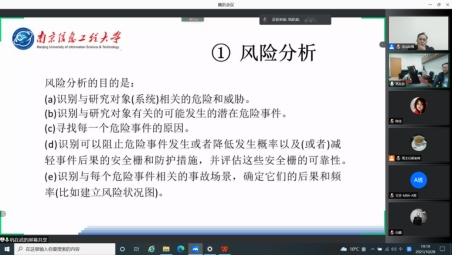 巩在武教授以当前新冠疫情风险为切入点,从风险分析、风险评价、风险控制与风险降低等八个方面向同学们展示了风险评估理论的全貌,并以领结图分析为例具体讲解了实际应用。
