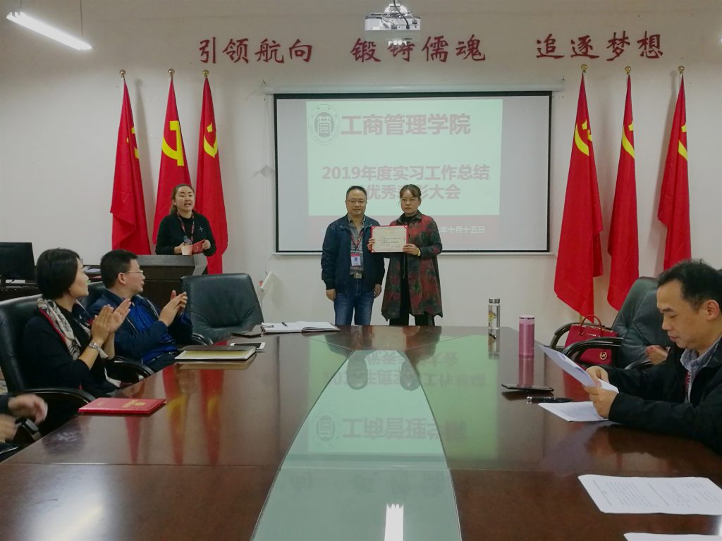 胡经理对公司的年度实习工作进行了总结,点名表扬了工商管理专业,指出此次实习工作该专业完成得相当出色。随后胡经理阐述了实习的重要性,要求同学们调整心态,克服困难,不畏艰苦,付出才会有收获,实习不只是学习专业技能、完成学业,更重要的是学习管理、处事沟通等的理念。后对获得表彰的同学和老师表示祝贺,鼓励未获奖的同学积极进取,在未来的职场拿更多更大的奖。