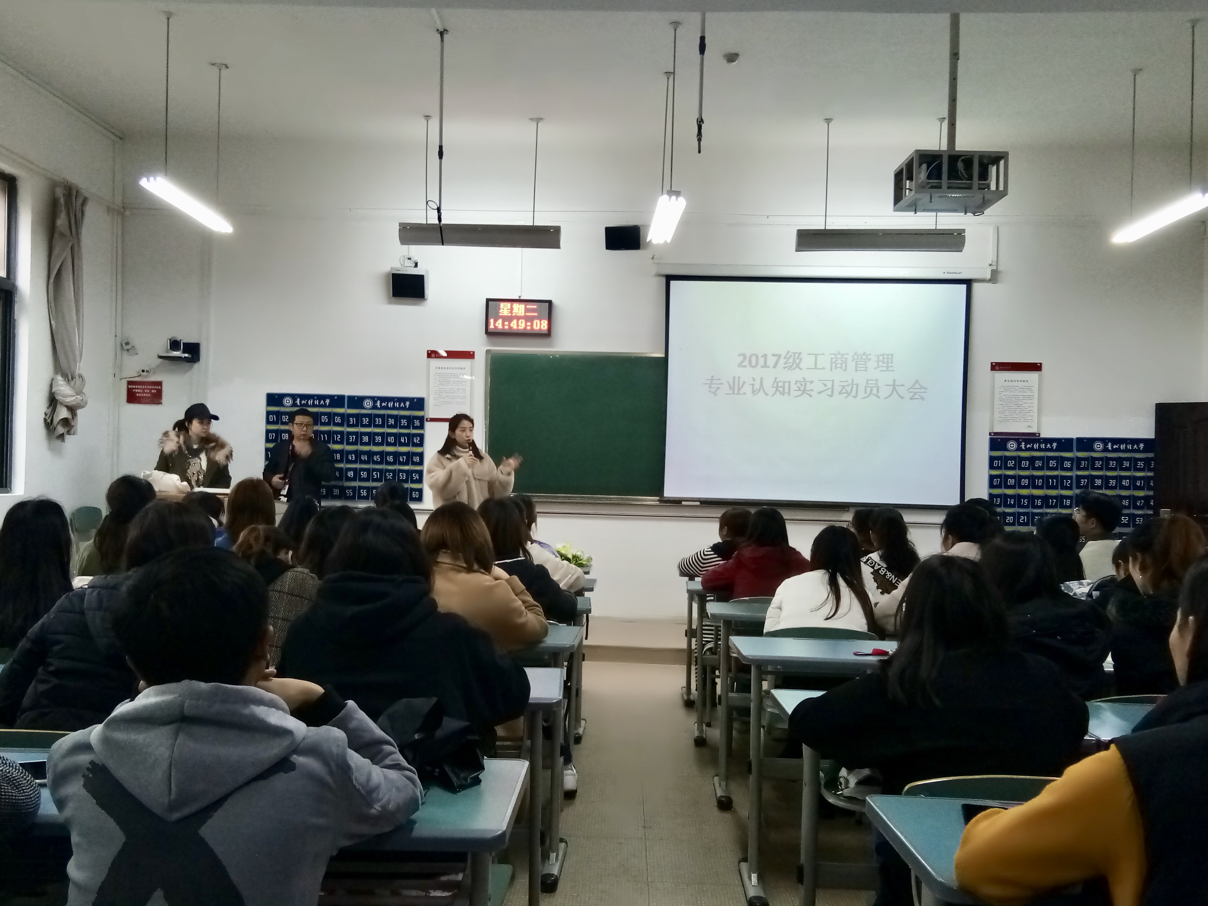 2019年3月12日,17级工商管理专业在勤学楼R2-28教室开展专业认知实习动员大会。本次会议由工商管理系副系主任王祯敏主持,工商管理教研室陈江涛老师、罗佳老师、伍昕老师及全体17级工商管理专业员工参加。