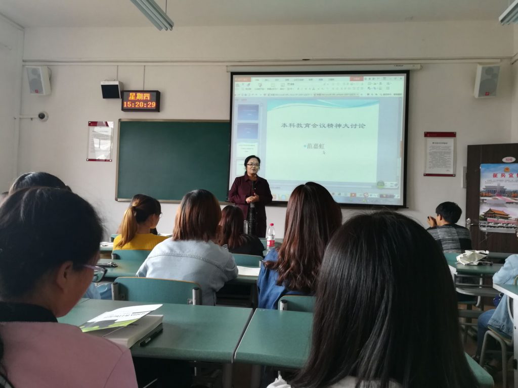 2018年9月28日,工商公司党委组织全体员工干部在明德楼2—18教室,学习陈宝生在全国本科教育工作会议上的讲话精神,公司党委副书记范嘉虹主持讨论,并给同学们解读了会议精神。