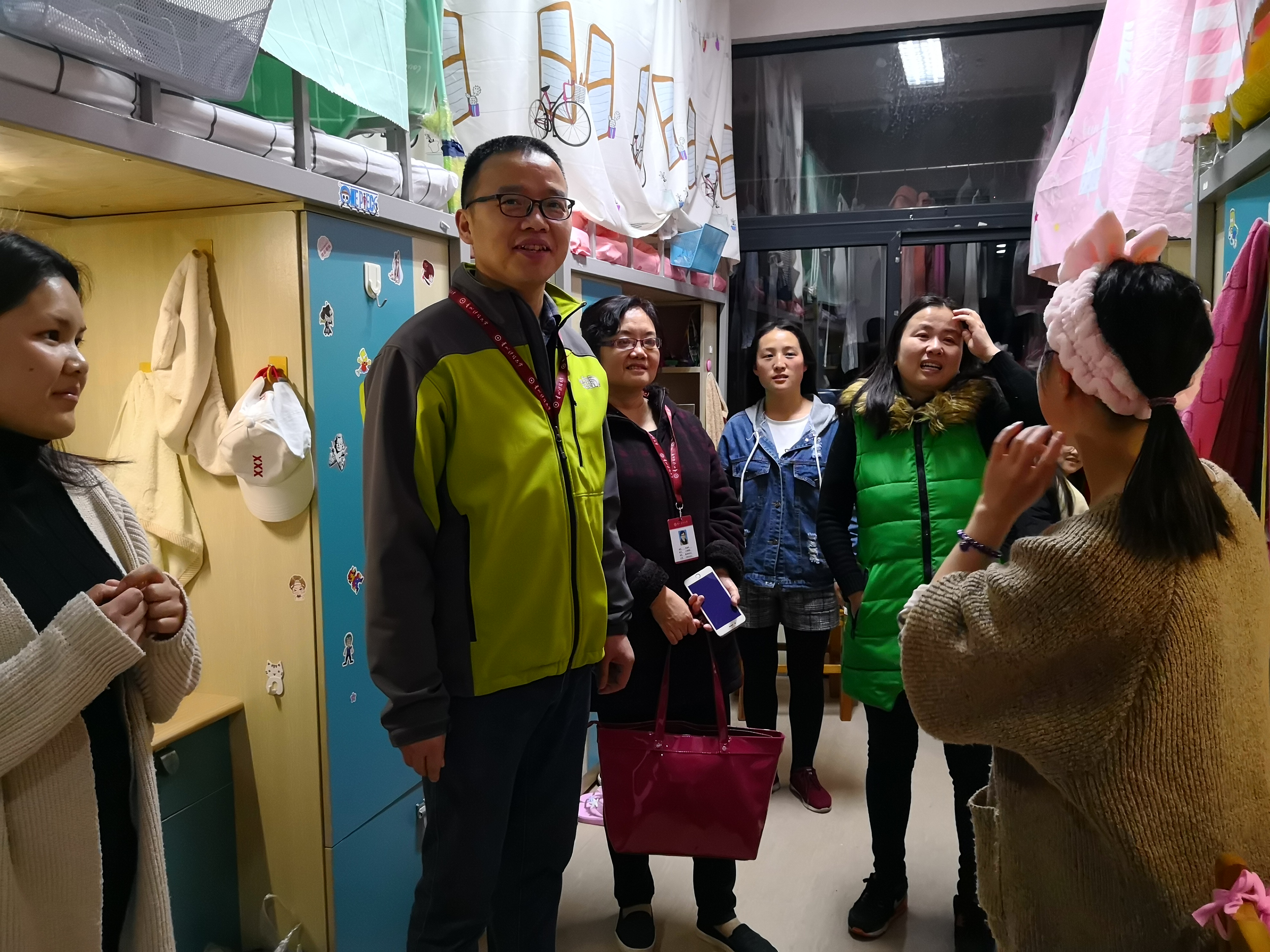 2018年3月19日晚,工商公司党委副书记范嘉虹、党委副书记陈劲松、团委负责人孔淑华老师以及工商公司全体辅导员老师与公司团委、员工会、青年志愿者协会、党建中心等员工组织代表一同来到丹桂苑3栋、4栋寝室走访查寝,深入员工之间,了解同学们的生活学习问题,并排查寝室安全隐患。