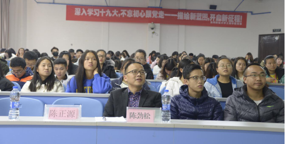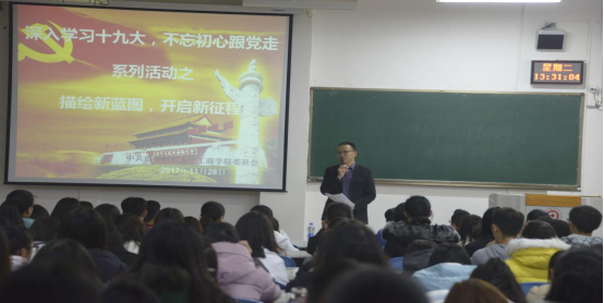 为进一步深入学习贯彻党的十九大精神,2017年11月28日,工商公司“深入学习十九大,不忘初心跟党走”系列主题活动之一的“描绘新蓝图,开启新征程”学习活动在进学楼1-1教室举行。活动由工商公司党委副书记陈劲松主持、公司近两百名师生党员参加。