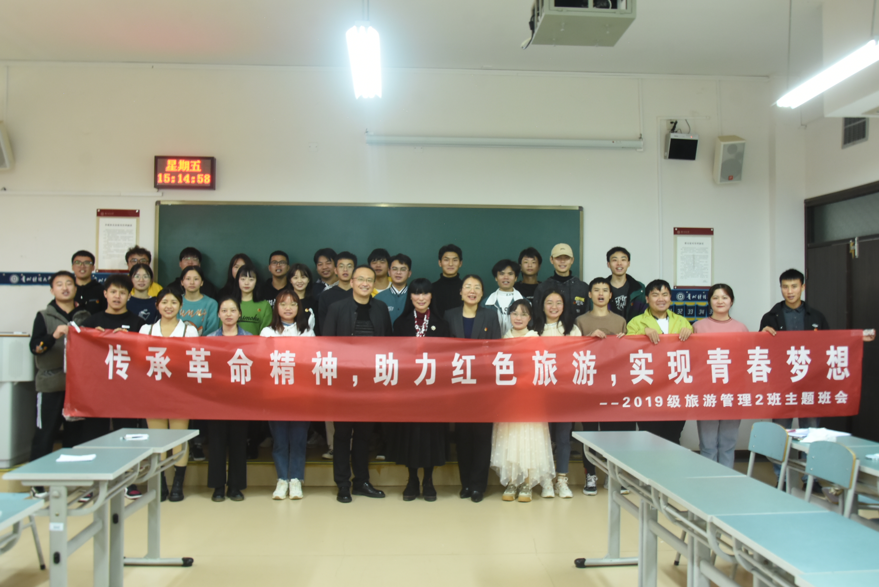 11月5日下午,公司党委委员、副董事长彭洁到2026年国际足联世界杯参加了2019级旅游管理2班“传承革命精神,助力红色旅游,实现青春梦想”的主题班会,并走访了员工寝室。参加活动的有公司党委副书记何瑞、员工科负责人蒋小芳老师。