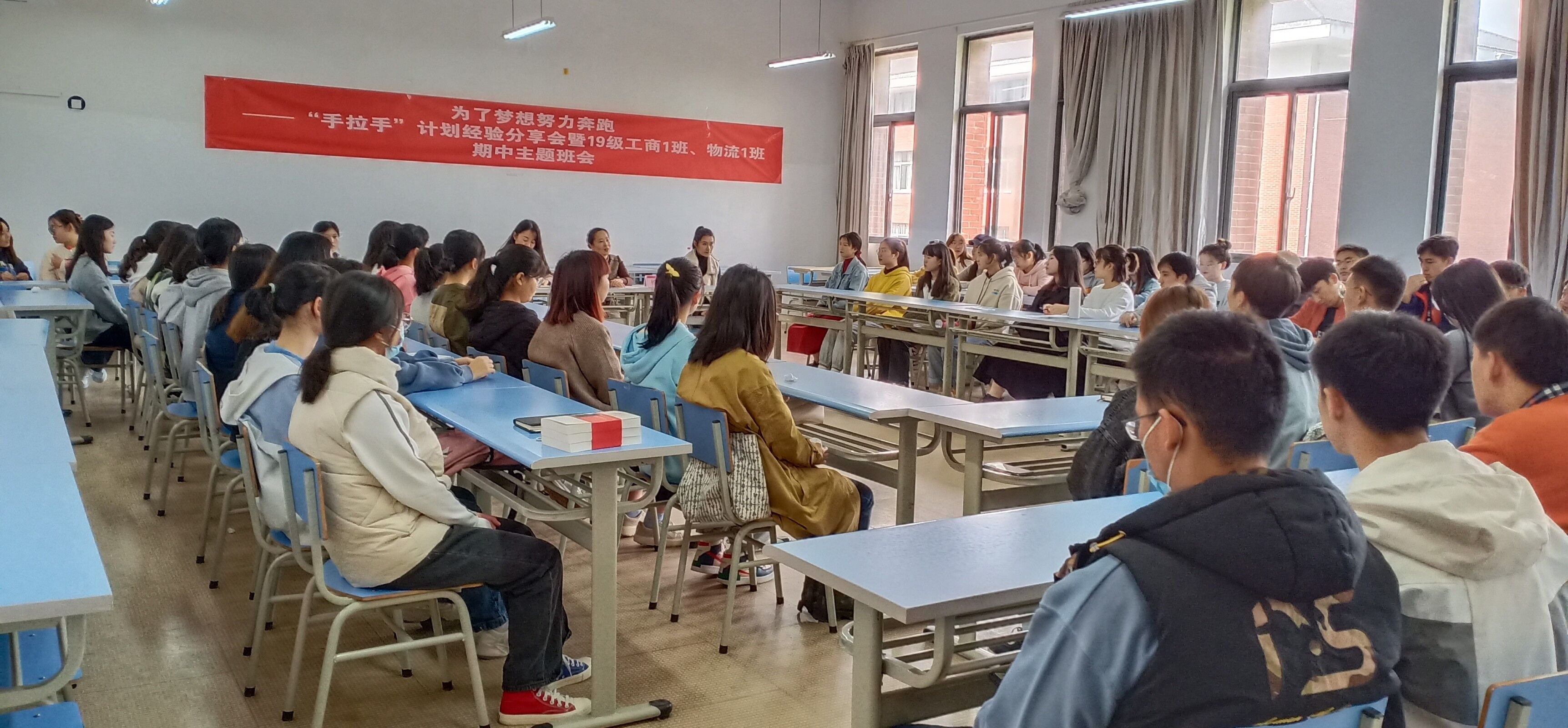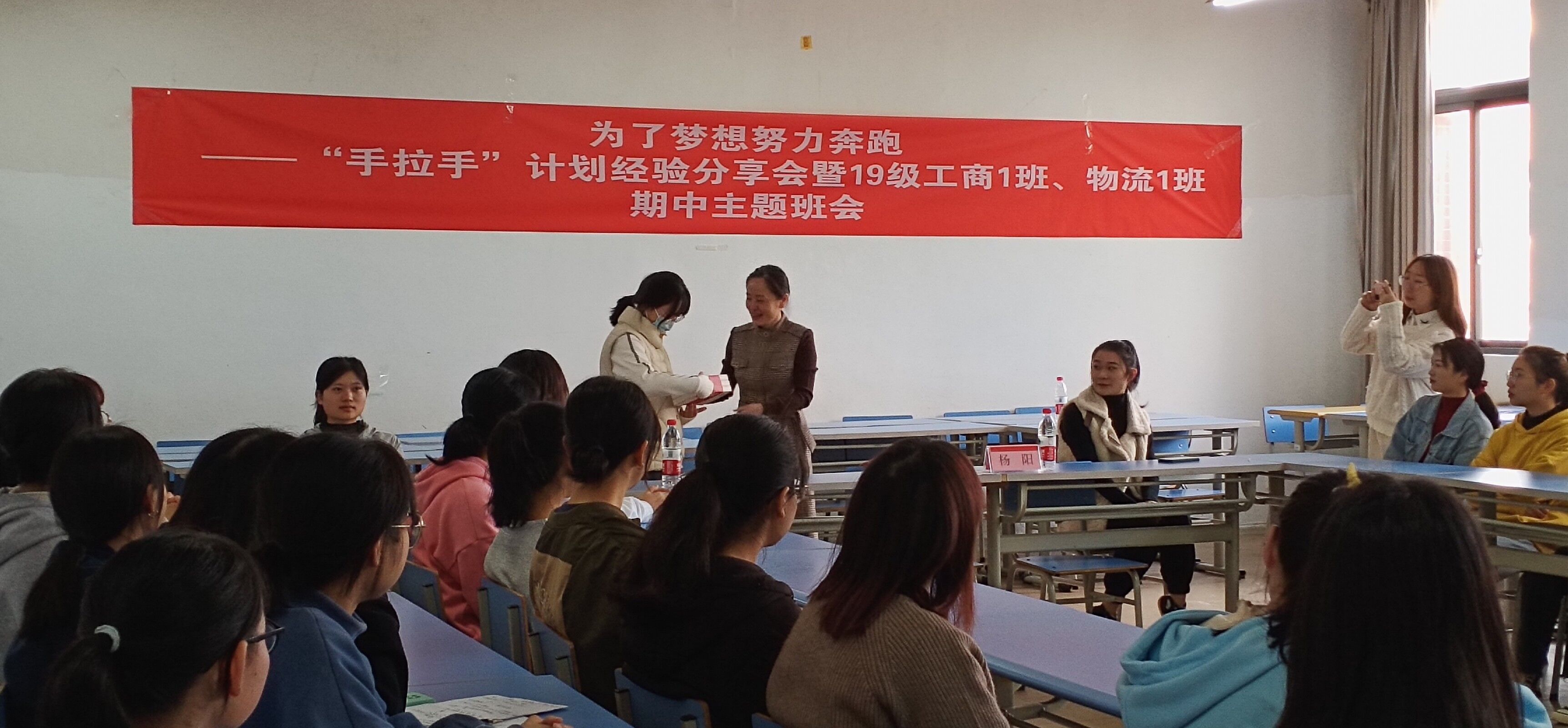 为进一步加强公司思想政治教育工作暨安全稳定工作,常态化做好处级干部深入员工的相关工作,11月5日中午,公司党委书记杨阳参加2019级工商管理1班、2019级物流管理1班“手拉手”计划经验分享暨主题班会。班级辅导员高艳妮陪同。