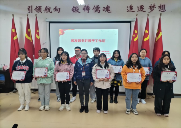 首先,王孔莉为新干事颁发聘书、授予工作证,并对新成员表示热烈的欢迎。她指出,大家刚进校一定要树立一个明确的奋斗目标,有方向地去提升自己,在繁忙的员工活动中要合理安排时间、提高工作效率,做到学习工作两不误,不断提升自己的综合能力。她强调,作为一名当代老员工,我们的新成员要了解国家的时事政治,将加入中国共产党作为我们的目标,积极向党组织靠拢,老成员要充分带领党员践行“学思践悟,党员带头”党建工作理念,不断提高自己的政治站位,大家一起努力把公司相关的党建工作开展好。