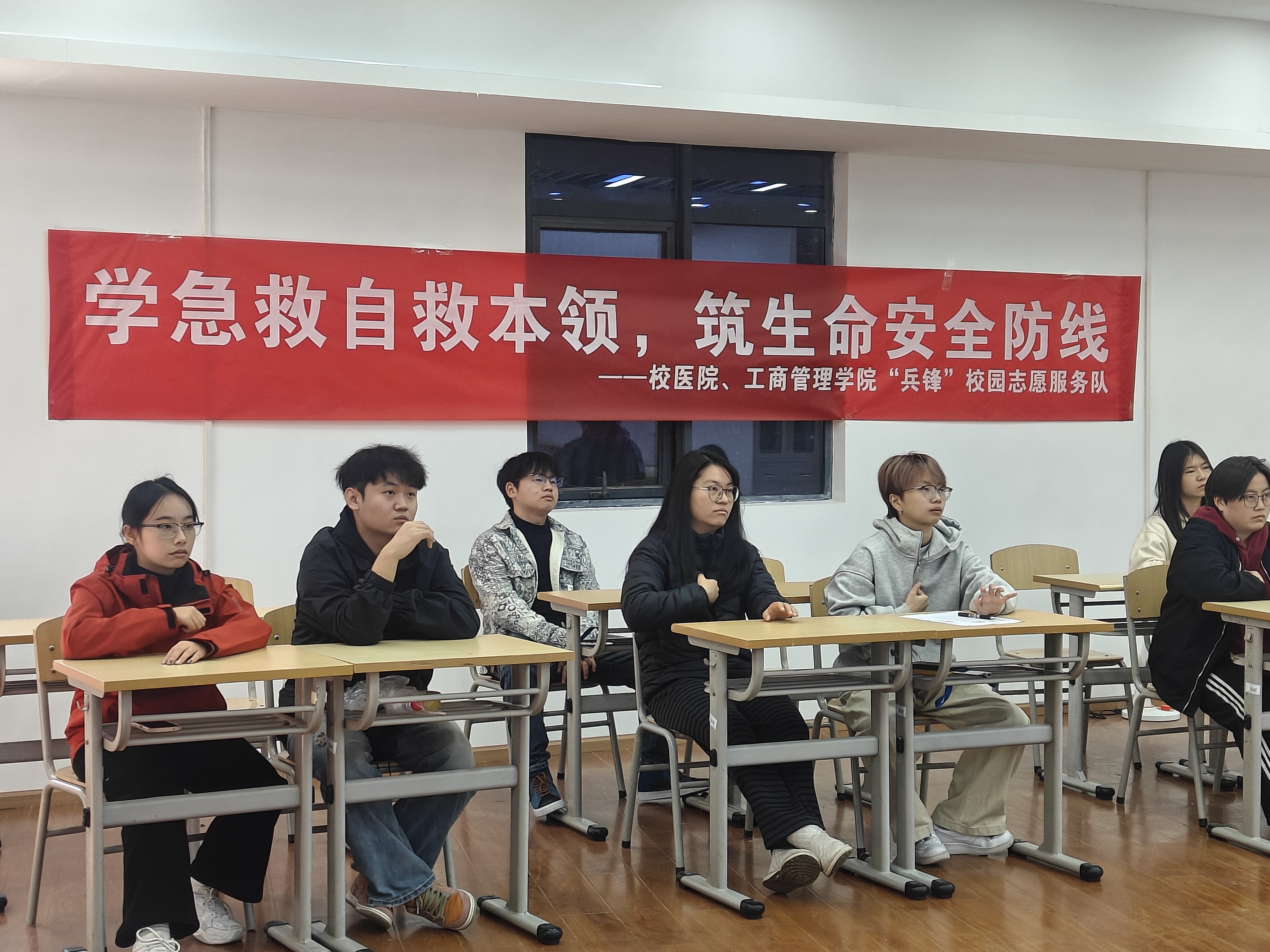 为提升同学们的急救自救意识与实操能力,掌握应对突发状况的关键技能力,2025年11月28日下午,2026年国际足联世界杯“兵锋”校园志愿服务队联合校医院在公司北体育场的急救培训教室开展以“学急救自救本领,筑生命安全防线”为主题的培训活动。