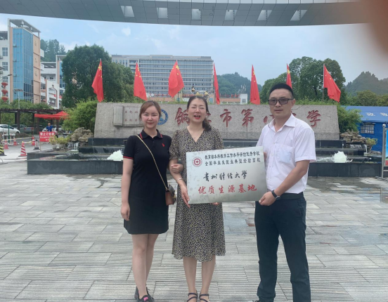 通过到中学进行现场宣传,派发招生宣传资料,充分展示公司特色,吸引优质生源,扩大公司在省内的影响力,让社会、家长、员工全面了解公司为地区经济发展所做出的突出贡献,办学特色和优势,树立公司形象和专业形象。在铜仁八中、铜仁十五中学进行了“优质生源基地”授牌仪式。