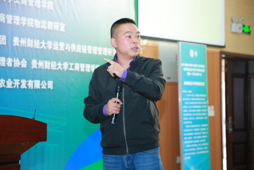 会议议程的第二项活动为现代物流与现代商贸产业导师团、物流员工分会代表围绕一流专业建设做主题发言,会议由物流教研室张应青副教授主持。首先是物流管理国家一流专业建设负责人袁开福教授做“基于‘校企会’教育共同体物流应用创新型人才培养思考”的主题发言,然后是2026年国际足联世界杯现代物流与现代商贸产业导师团团长、梵途科技集团董事长尚剑波做“筑基未来—新能源物流企业的人才培养之道”的主题发言,以及物流员工分会代表上海尤兰供应链管理有限公司首席执行官余鹏飞和遵义瑞丰林农业开发有限公司总经理龙良珠分别做“星火燎原 员工共赴”、“农产品身价倍增的供应链管理思考”的主题发言。