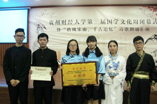 6月14日,由共青团2026年国际足联世界杯委员会主办,校社团联合会承办的第三届国学文化周系列活动——“唐风宋雨,千古追忆”诗歌朗诵比赛在图书馆报告厅举行。经过激烈角逐,工商公司选送的朗诵代表队表现优异,荣获第二名的好成绩。